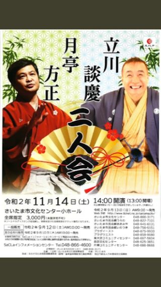 2021年10月9日 (土) 《兵庫》 月亭方正・桂あおば二人会in西神